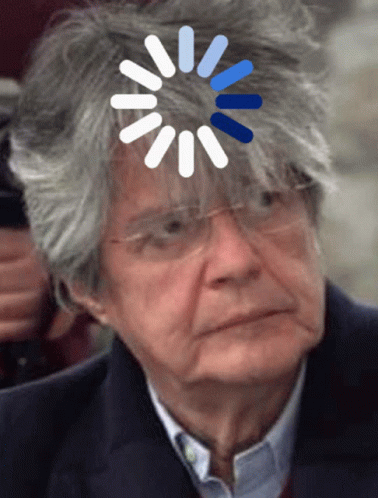 A man's face in a close-up with a spinning blue and white loading icon superimposed on his head, humorously depicting "Loading Lasso."
