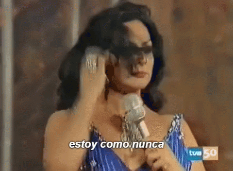 Lola Flores sings live, adjusting her hair on stage, feeling 'like never before'.