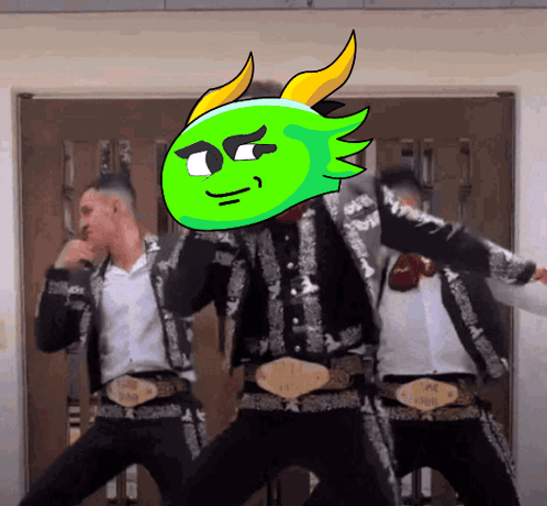 Men in mariachi suits dance with a superimposed green Zksync dragon face.