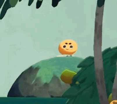 An animated orange character with a face appears on a green hill, then quickly disappears from view.