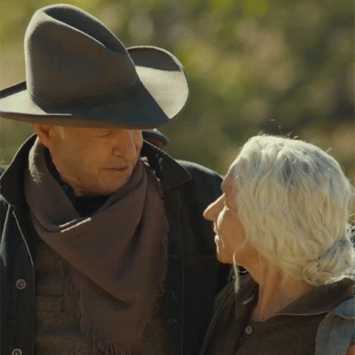 Helen Mirren and Harrison Ford as Cara and Jacob Dutton share a tender moment in 1923.