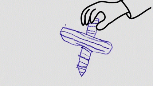 A hand draws a cross-like shape that then spins like a pirinola or spinning top in a continuous loop.