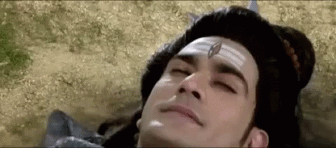 Lord Shiva lies on the ground, followed by the appearance of Maa Kali with her eyes closed, under a dark sky.