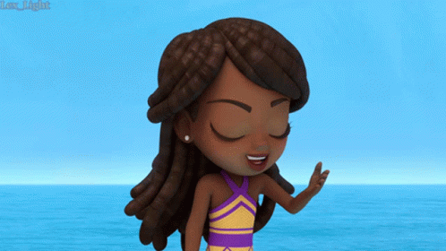 Lorelai Santiago, the cartoon girl from Santiago of the Seas, looks out at the ocean, shading her eyes.
