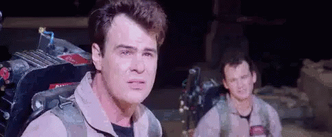 Los Cazafantasmas, including Bill Murray, face a challenge with the Spanish caption 'Tú date' (Go for it).