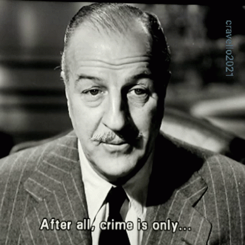 Louis Calhern delivers a memorable quote about crime being a 'left-handed form of human endeavor' in Asphalt Jungle.