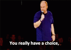 Louis C.K. on stage, holding a microphone and saying, 'You really have a choice,' during a stand-up routine.