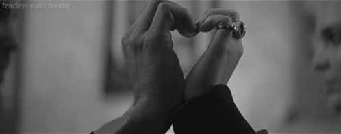 Two hands intertwine to form a heart shape, symbolizing love and affection.