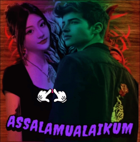 A young couple with a heart animation, featuring the greeting "Assalamualaikum" below them.