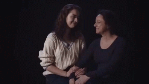 A heartwarming moment of a mother and daughter smiling and holding hands, sharing a deep bond.