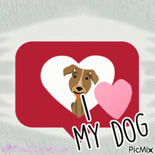 A cute cartoon dog inside a heart, with the text 'I LOVE MY DOG'.