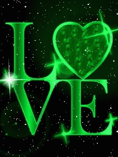 The word 'LOVE' with a sparkling heart, glitters against a starry blue background.
