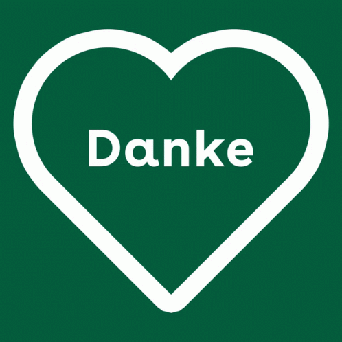 A green background transitions from a white heart with 'Danke' to a white plant icon within a circle.