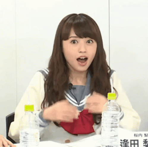Rikako Aida shows a surprised and shocked expression, covering her mouth, while sitting at a table.
