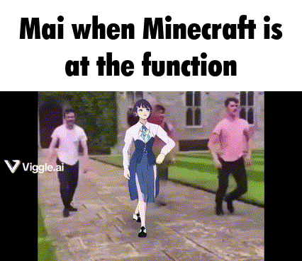 mai when minecraft is at the function is walking down a sidewalk with a group of people .