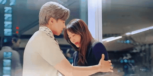 Logan and Shim Ryeon share a tender hug in Love Park, a memorable moment from the K-drama Penthouse.