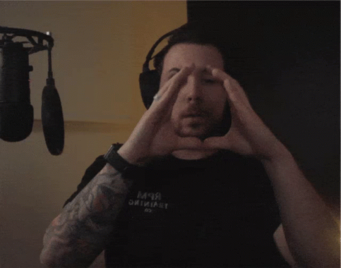 Man in headphones makes a heart shape with his hands, expressing love for Roche.