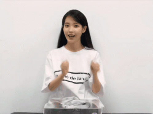 IU (Lee Ji-eun) makes a cute mini-heart gesture, expressing love or 'saranghae'.