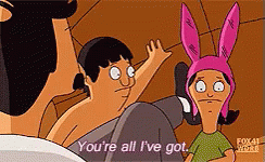 A Bob's Burgers character expresses deep sentiment, saying 'You're all I've got.'