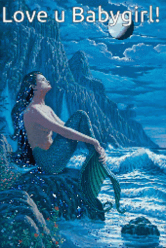 A beautiful painting of a mermaid, dedicated with love to Babygirl Emmalyn, sitting on a rock by the ocean.