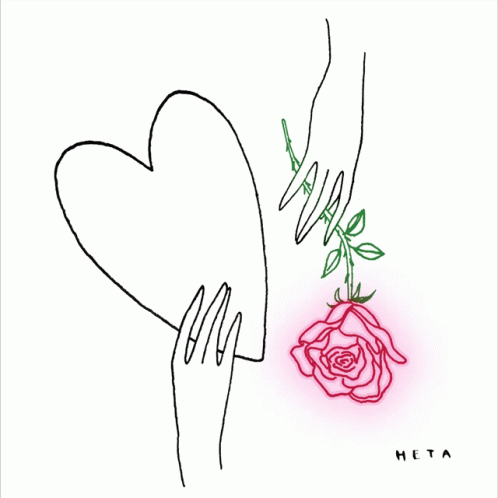 A heartfelt animation showing hands holding a heart, with 'BE MY VALENTINE' being written, alongside a glowing rose.