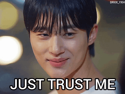 Byeon Wooseok as Ryu Sunjae in the K-drama Lovely Runner with 'JUST TRUST ME' caption.