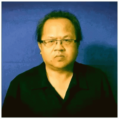 A man with glasses demonstrates the sign for 'Honte' (shame) in LSF, wearing a black shirt against a blue background.