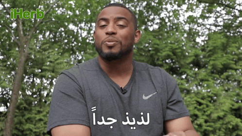 Fahad Sal, wearing a Nike t-shirt, reacts to something 'Very Delicious' in an outdoor setting.
