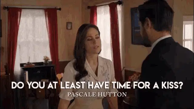 Lucas Bouchard and Elizabeth Thornton share a tender embrace in a hot air balloon, as Lucas promises to protect her.