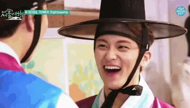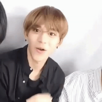 Lucas from NCT smiles brightly and waves to the camera, wearing a black shirt.