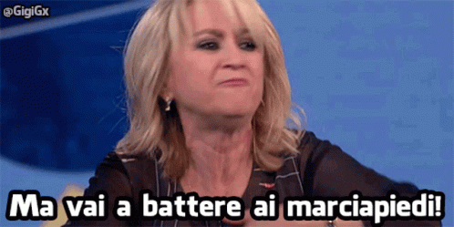 Luciana Littizzetto passionately exclaims 'Ma vai a battere ai marciapiedi' with an animated gesture.