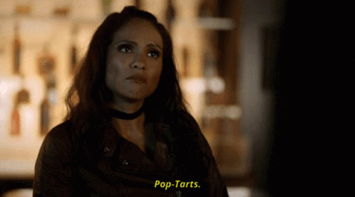 Mazikeen Smith (Lesley Ann Brandt) says 'Pop-Tarts' while wearing a choker.