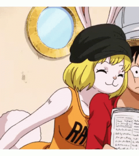 Carrot smiles sweetly next to Luffy in a scene from the One Piece anime.