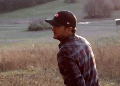 Luke Bryan gestures and gives the middle finger in a field, with 'COME ON' text appearing.