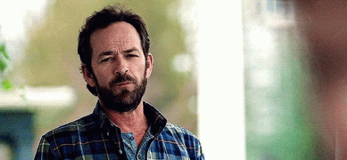 Luke Perry as Fred Andrews, looking at the camera in a plaid shirt, from the series Riverdale.