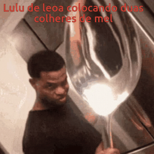 Lulu de Leoa putting two giant spoons of honey, a humorous meme featuring a man with an oversized spoon.