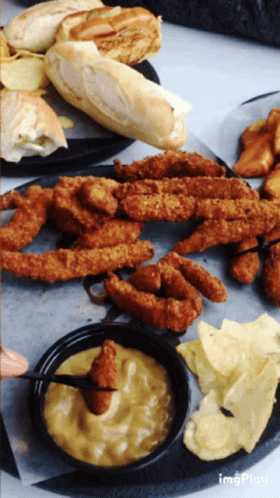 Enjoy a delicious lunch with crispy chicken fillets, perfect for dipping in a savory sauce.