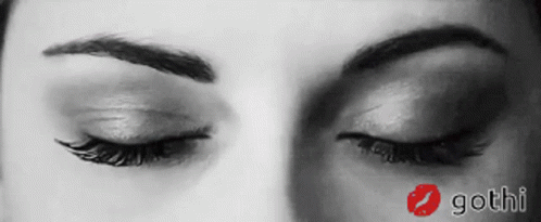 A black and white close-up of a woman's closed eyes, featuring the Gothi logo.