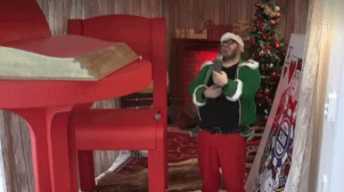 Antoine Martinez as Lutoinou celebrates with confetti, dressed in a festive Santa-themed outfit for Virgin Tonic.