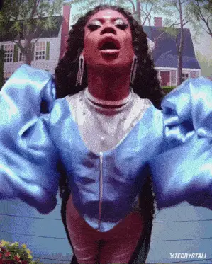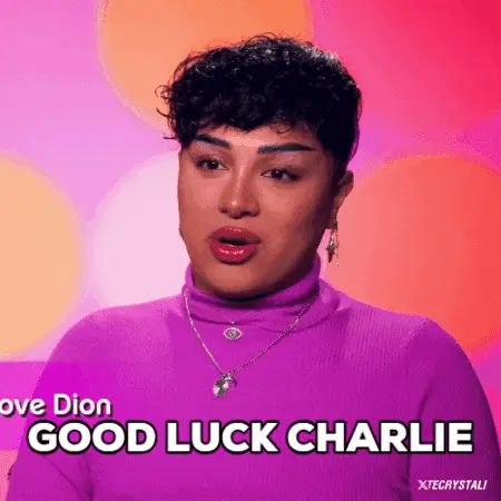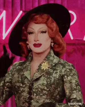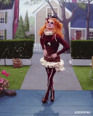 Luxx Noir London from RuPaul's Drag Race Season 15 poses in a white dress against a neon sign.