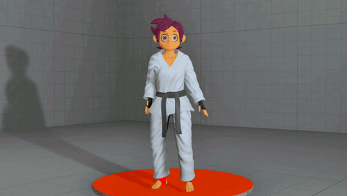 Luz Noceda from The Owl House practices a powerful karate kick in her white uniform.
