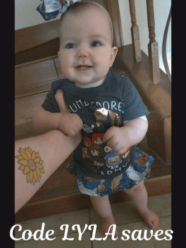 Adorable baby Lyla models cute cartoon-themed baby clothes, with a special discount code 'LYLA' available.