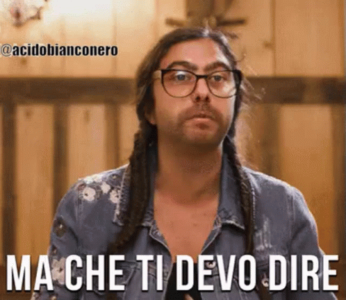A man with braids and glasses, resembling Andrea Agnelli, makes a resigned expression with Italian text.
