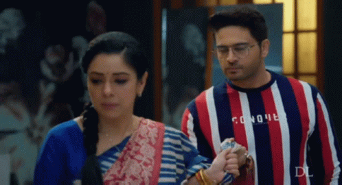 Anuj and Anupama share an intense moment, looking at each other with serious expressions.