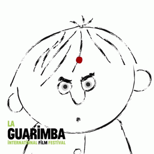 Angry cartoon character with a red bindi on a poster for La Guarimba International Film Festival.