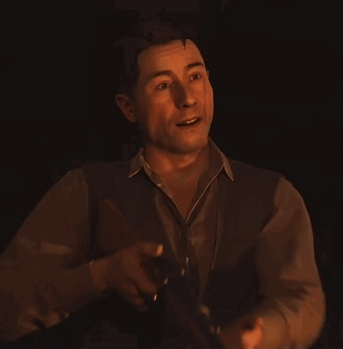 a man in a vest is holding a gun in his right hand