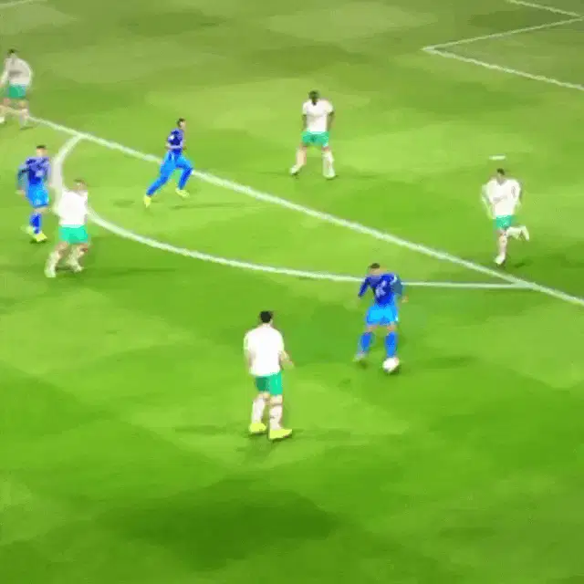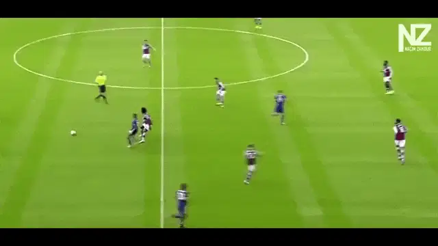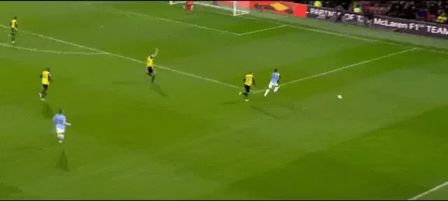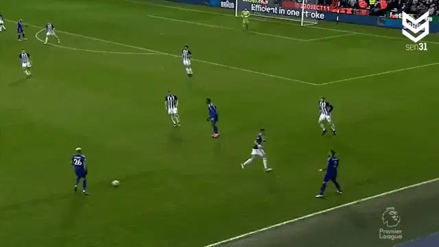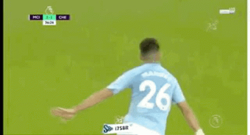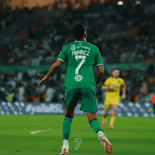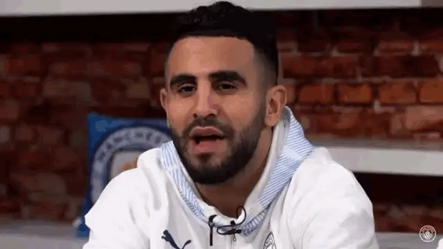 Riyad Mahrez celebrates scoring a goal for Manchester City against Chelsea in a soccer match.
