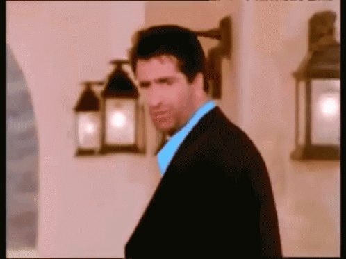 Mahsun Kırmızıgül in a black suit and blue shirt, gesturing in a room with wall lanterns.