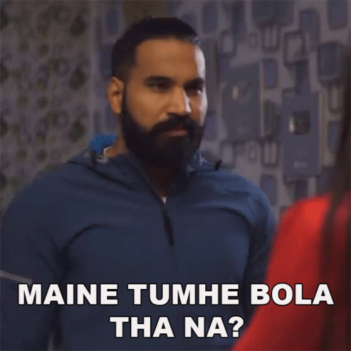 Sanju Sehrawat, a man with a beard, speaks the phrase "Maine Tumhe Bola Tha Na?" with an intense expression.