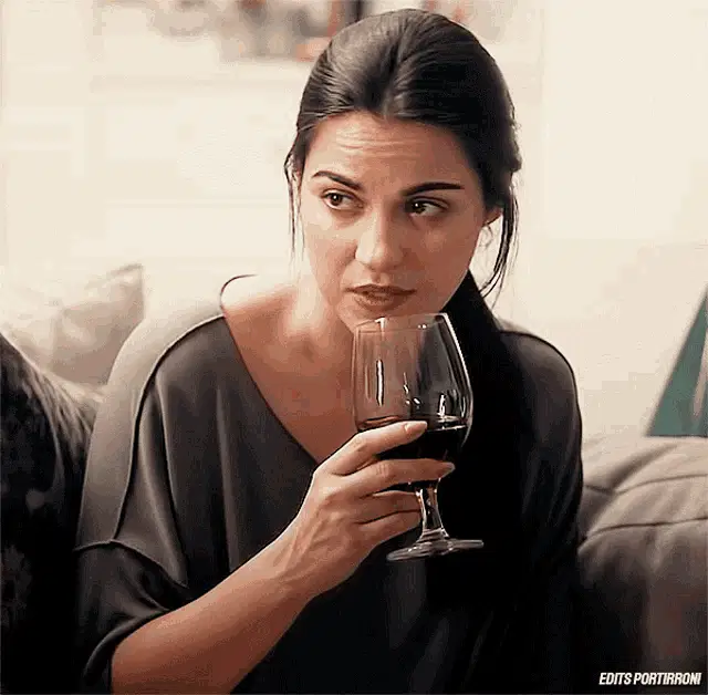 Maite Perroni's captivating gaze with red lipstick, featuring the 'EDITS PORTIRRONI' watermark.